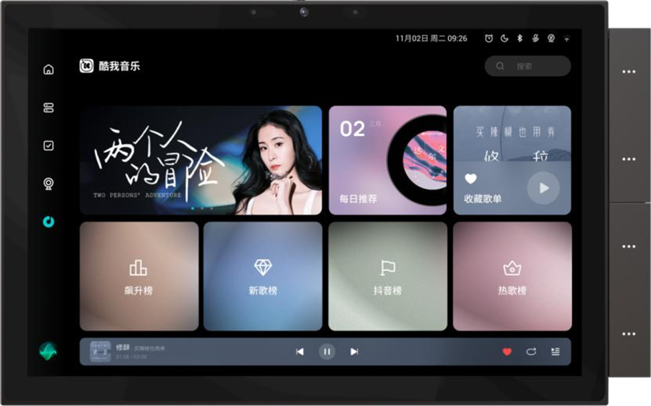 5. 在線音樂:接入了音樂資源,可在中控上直接播放音樂,同時支持外接藍牙喇叭輸出,暢享 Hi-Fi音質。