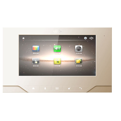 產品功能: 智能語音雙向傳輸,觸控按鍵,操作提示音,人機對話功能,和旋鈴聲,開鎖,監視單元主機,7寸LED數字液晶屏,短信息發布,四防區報警,拍照等。設備參數安裝方式:壁掛式外形尺寸:200*124*18.8顯示方式:TFT-LCD-7寸屏幕分辨率:800*480功能:信息發布、留影留言、記錄查詢、梯控功能可選、戶戶對講防區接口