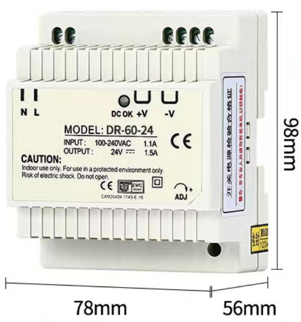 DC-24v3ADC24V,2.5A調(diào)光電源直流電壓:24V(副電源)額定電流:2.5A額定功率:60W電壓范圍:AC100-240V額定電流:1.1A產(chǎn)品尺寸:78*93*56mm安裝方式:35mm標(biāo)準(zhǔn)丁導(dǎo)軌安裝