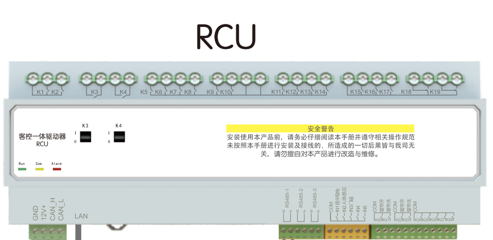 YS-RCU19-7客控一體驅(qū)動(dòng)器具有LED輸出回路,RS485通道,窗簾通道,干接點(diǎn)輸出通道,干接點(diǎn)輸入通道,滿足標(biāo)間的所有需要,可接入酒店管理系統(tǒng)軟件對(duì)各個(gè)設(shè)備進(jìn)行集中監(jiān)控和控制。專有CAN-BUS總線通信可設(shè)置64個(gè)場(chǎng)景,K1-2回路為10A輸出,接入功率較大的燈帶,排風(fēng)扇等受控設(shè)備;K3-4回路為20A輸出,K3回路接受控插座/插卡取