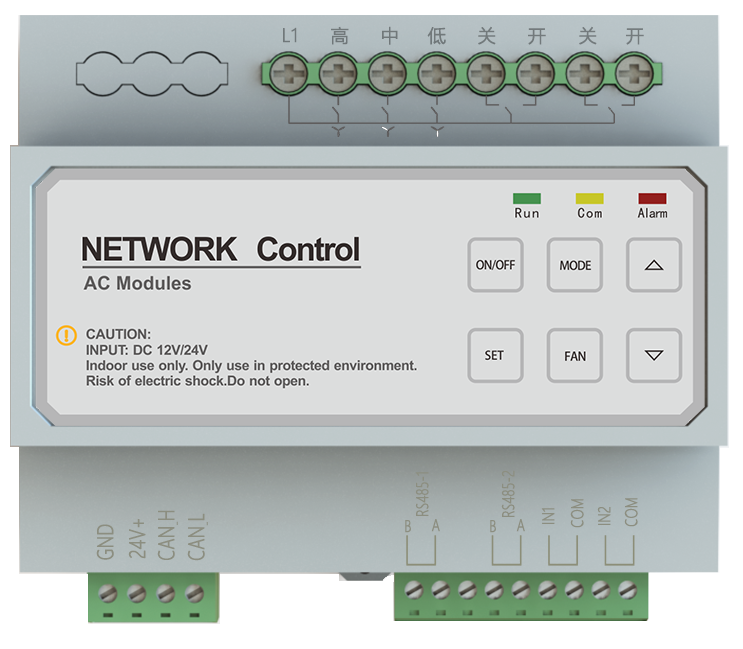 YS-RPG-6-6套房空調(diào)驅(qū)動(dòng)器按空調(diào)臺(tái)數(shù)增加3路6A輸出(控制三檔風(fēng)速2路0.5A輸出(控制2管制冷熱閥應(yīng)急開(kāi)關(guān))用于風(fēng)機(jī)盤(pán)管控制輸出,自帶通用接口控制,可通過(guò)外部面板控制,CAN總線進(jìn)行控制。尺寸:108mm*88mm*66mm安裝方式:35mm標(biāo)準(zhǔn)丁導(dǎo)軌安裝,占6個(gè)模位數(shù)